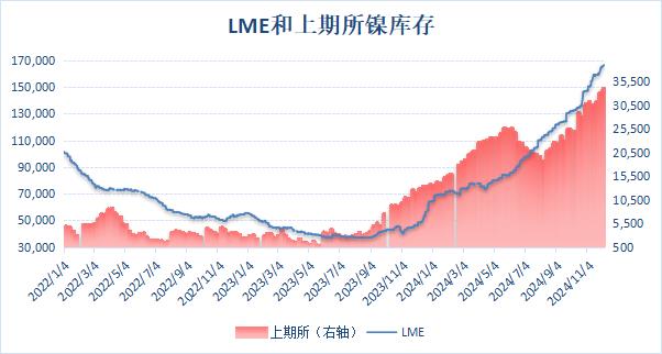 上期所公布的數(shù)據(jù)顯示,12月6日當(dāng)周,滬鎳庫存繼續(xù)回升,周度庫存增加3.26%至34,090噸,刷新逾四年最高位。