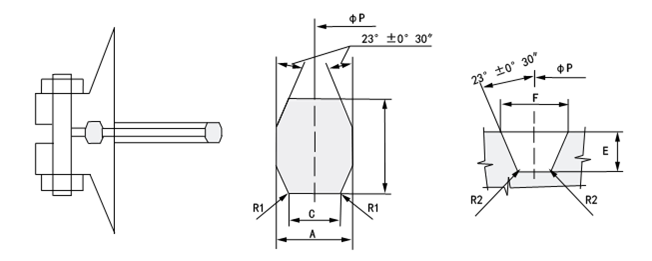 墊片安裝在法蘭面的梯型環(huán)槽內(nèi),當擰緊連接螺栓時,受軸向壓縮與上下梯型槽帖緊,產(chǎn)生塑性變形,形成一環(huán)狀密封帶,建立初始密封。升壓后,在介質(zhì)壓力的作用下,使環(huán)墊徑向擴張。墊片與梯形槽的斜面更加帖緊,產(chǎn)生自緊作用。但是,介質(zhì)壓力的升高同樣會使法蘭和連接螺栓變形,造成成密封面間的相對分離,墊片密封比相對下降,因而,環(huán)墊可以認為是半自緊密封。